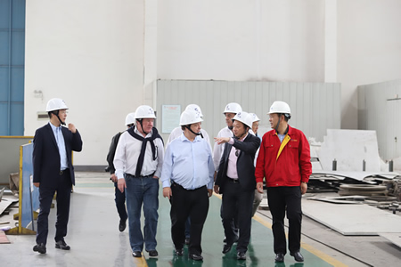 法國議員客戶來公司參觀考察,洽談合作事宜。公司總經理錢菊明先生和研發、生產、市場負責人陪同外商到生產現場實地考察。參觀完雙方在公司會議室進行了洽談,對我公司強大的研發制造能力和設備先進的化工制藥生產基地表示了贊許和肯定,并達成多項合作意向。