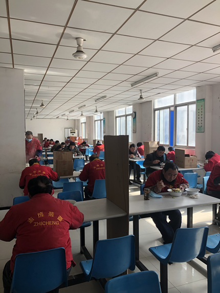 2020年,也是特殊的一年。在疫情面前,作為羊尖鎮2020年首批復工企業,志成公司嚴格響應羊尖鎮鎮府要求,按照安全、有序、可控的總體要求,要求員工在進入廠區時測量體溫,中午用餐以后測量一次體溫,公司同時為員工提供發放口罩,做到一天兩次。同時員工吃飯時,采用對角線方式,同時用硬紙板遮擋,做到人與人之間有間隔,這樣更能及時、有效的做好防控工作,為員工們提供一個安全,舒適的工作環境。